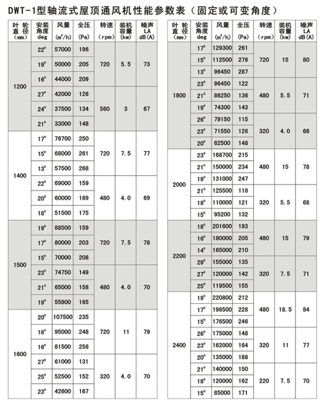 ①轴流式屋顶风机(DWT-I),直径自Φ300-Φ2400mm,共十七种机号;